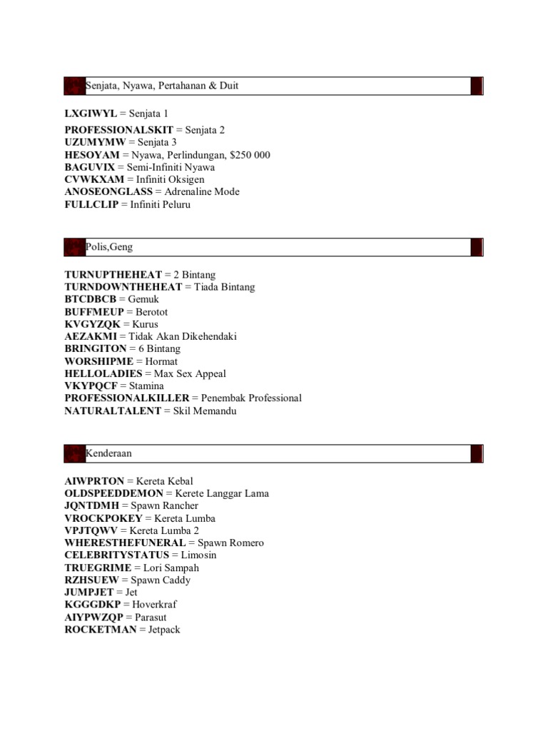 Cheat Gta San Andreas Ps2 Kereta Ferrari Bahasa Melayu